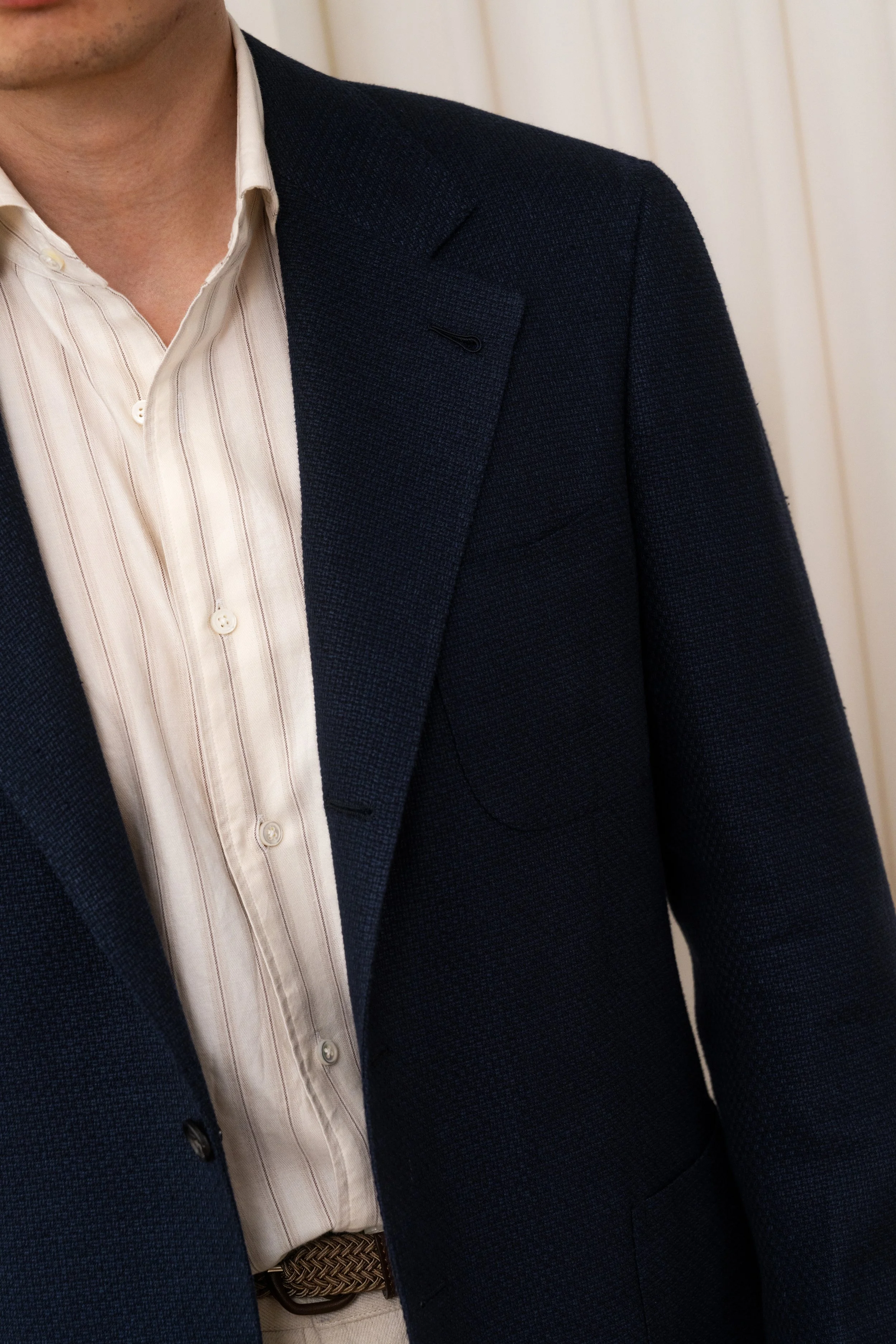 If you ask why I hold such affection for basketweave, I would begin with the hand. Running your fingers across the surface, you will feel a gentle undulation, the rise and dip of warp and weft as they trade places. It is a weave that engages not only the eyes but also the touch—a quality that, in fine tailoring, matters as much as silhouette. A textured cloth fulfils two of the only two out of five human sensorium (touch, smell, taste, intuition in addition to the long privileged faculty of sight).