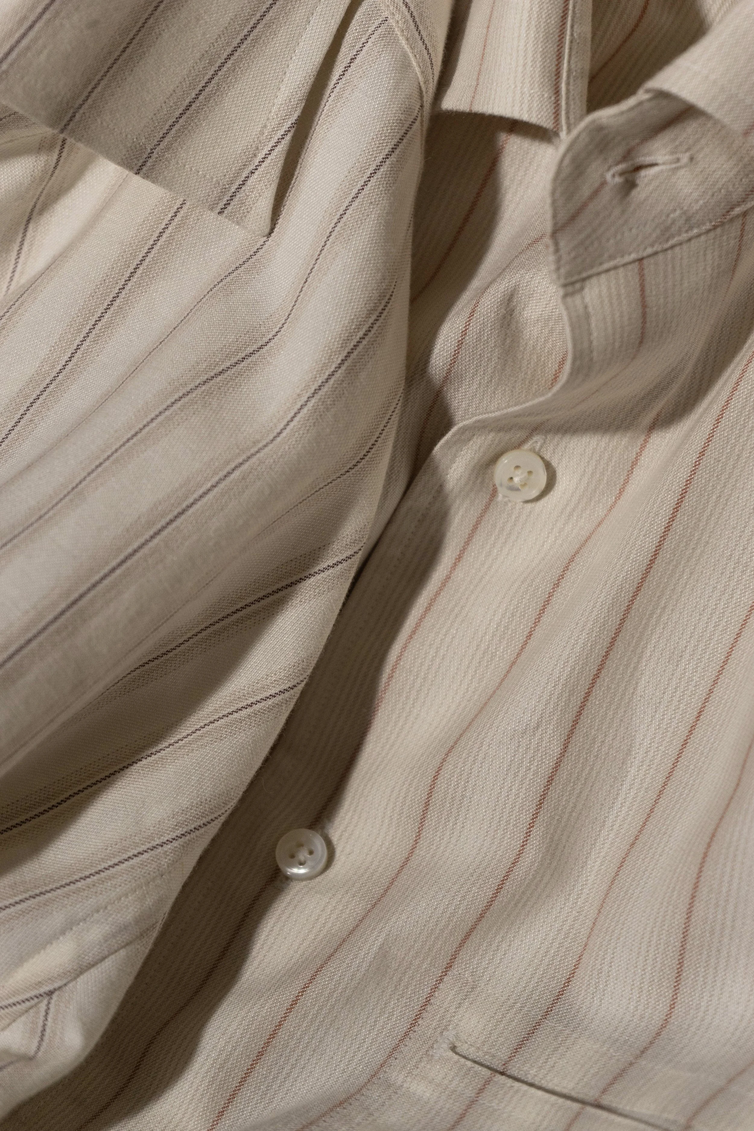 The palette is tonal and contemplative—natural hues that mirror earth and canvas. Each shirt carries soft waves of barely-there contrast in the form of shadow stripes, giving depth without declaration. These are casual shirts at heart, but ones that lean toward the poetic.