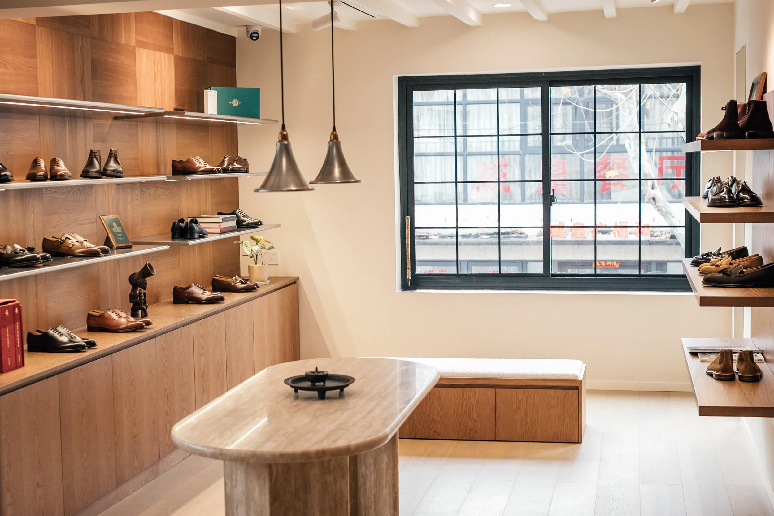 Here, our own footwear is presented alongside pieces developed in collaboration with Crockett & Jones, Bowhill & Elliott, and Stefano Bemer. These collaborations sit at the core of the space. Alongside this, and through our partnership with Tassels Hong Kong, the space also brings together a wider selection of fine footwear. Names such as John Lobb, Edward Green, Alden, and others are presented together, each pair to stand on its own while forming part of a broader, considered curation.