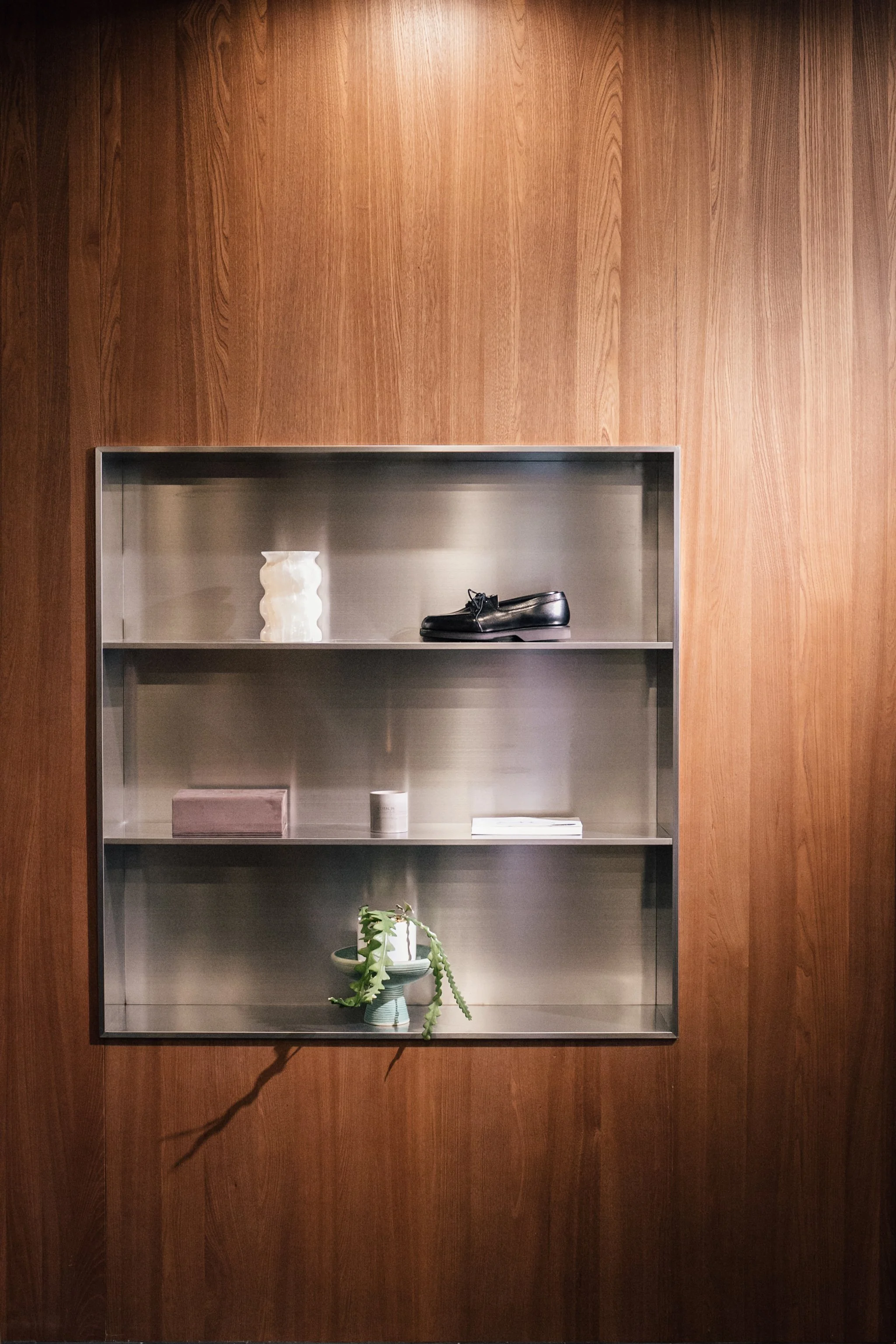 The space is calm, open, and where our footwear comes together. Each piece is developed in close collaboration with master craftspeople whose traditions and techniques align with our own values. These partnerships allow us to form and construction with precision that is grounded in wearability. The result is a space shaped by the same care and discipline as the craft itself.