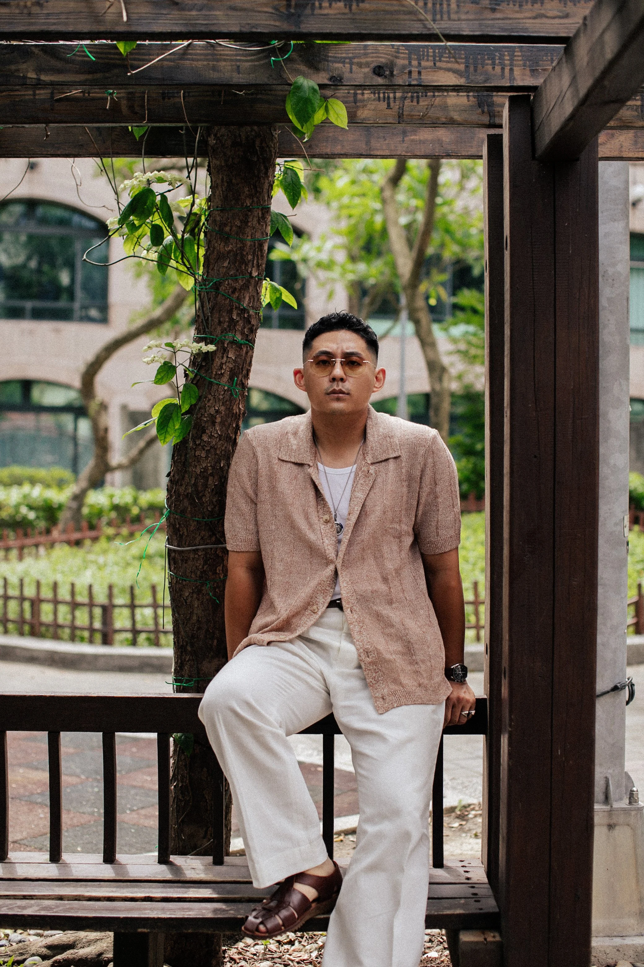 The shirt’s open-knit construction offers breathability, Borrowing the spirit of Italian maximalism, the choice of pure linen in weave yet has the distinct tactile quality of something more structured. Designed for summer wear, the knit is porous and airy, feeling dry, crisp, and cool against the skin. Its design draws inspiration from vintage crochet, evoking nostalgia, while remaining firmly modern in silhouette and function. In practice, this means it works equally well whether paired with shorts for a casual seaside stroll, swim trunks at a poolside bar, or tailored trousers for an evening dinner by the coast. It’s an exercise in contrasts: refined yet relaxed, traditional yet contemporary, utilitarian yet undeniably elegant.