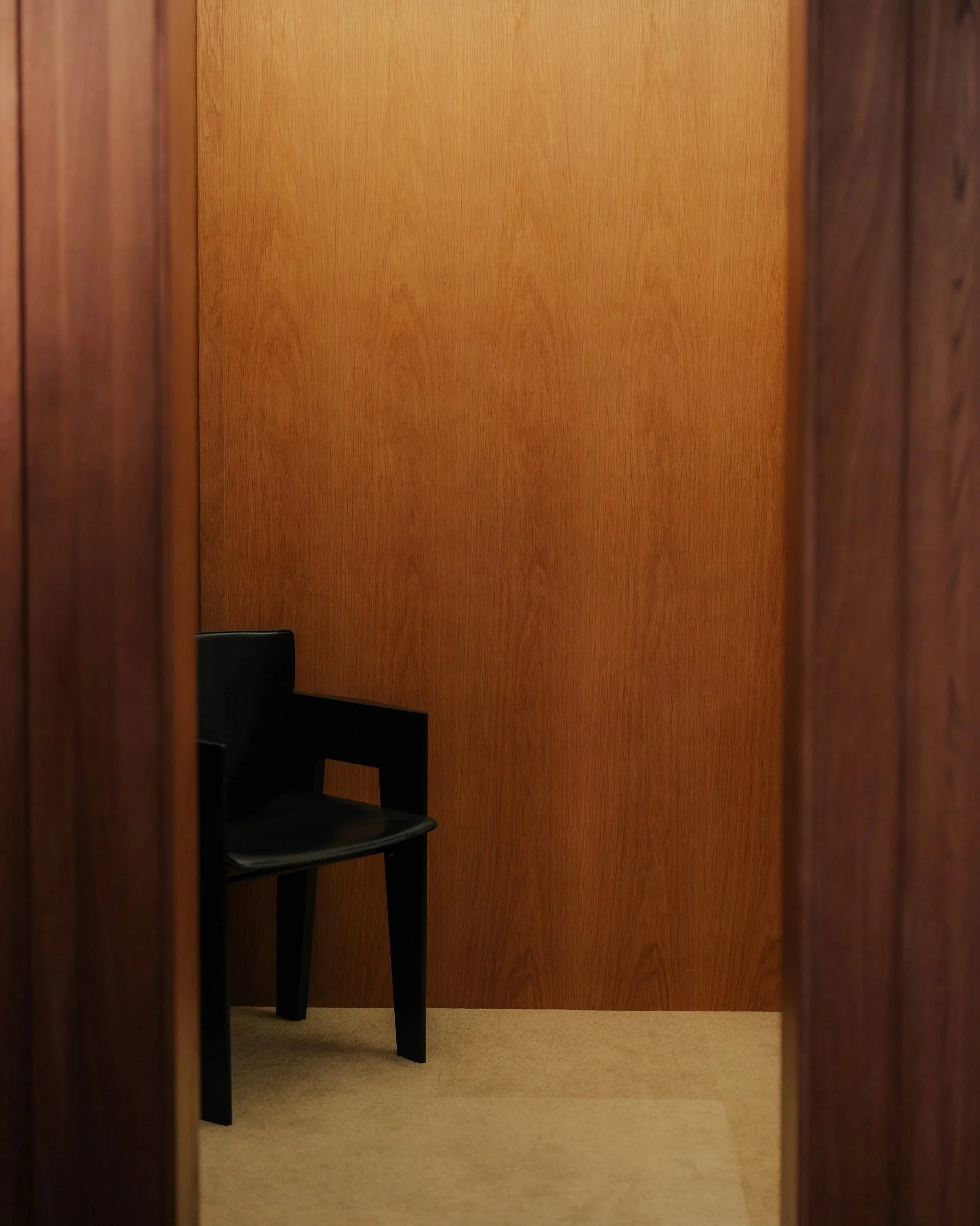 Warmly lit and intimate, the fitting room cradles each garment in soft shadows with a gentle glow that turns each garment into a portrait of poise.