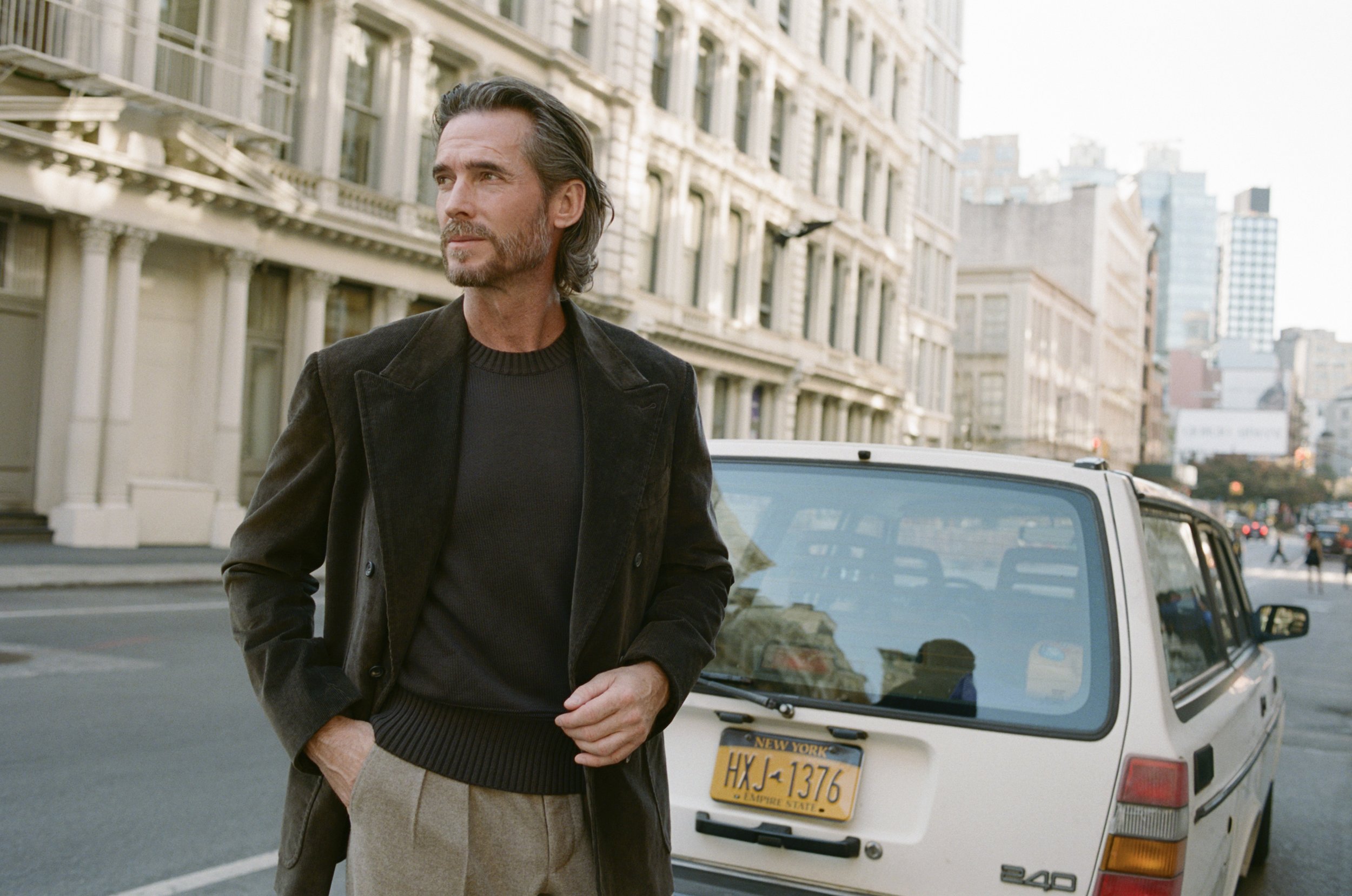 This tale follows a countryman with a curious eye, venturing into the heart of the Big Apple. Throughout his journey, he grapples with an internal resistance to change, holding fast to his organic way of life. The urban lifestyle clashes with his country roots, yet as he explores the city's nooks and crannies, he discovers the hidden charms of each area, ultimately finding a harmonious medium. This transformation doesn't compromise his essence; instead, while slowly going from downtown New York to uptown, each part of the town inspires a new outfit, symbolising the integration of his style with the house’s curated fashion. He becomes an Anthologist, exemplifying how personal attire can merge seamlessly with the house’s designs, and vice versa.