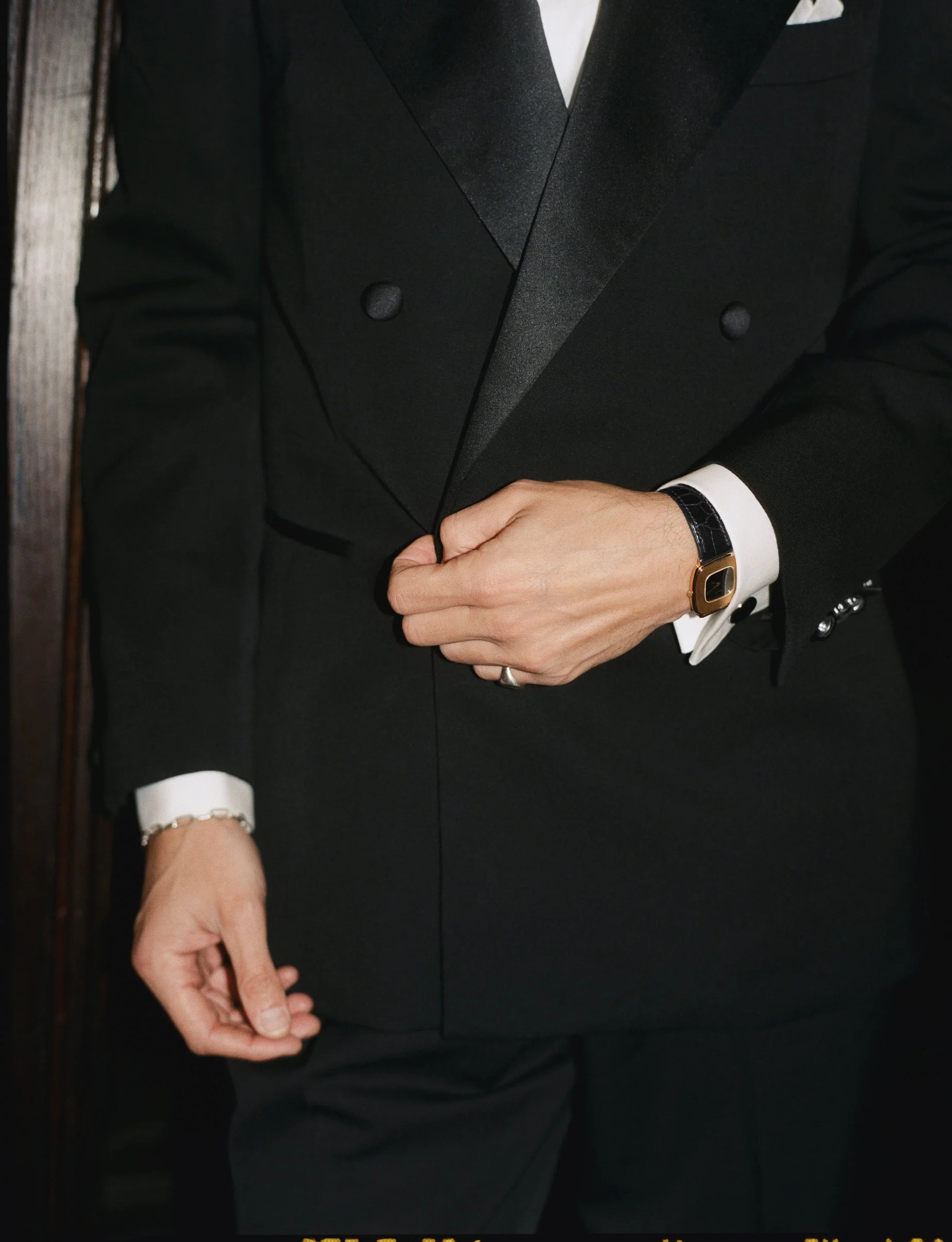 It is in the details that distinction emerges: a well-chosen cufflink, a self-tied bow tie, or a thoughtfully considered cummerbund transforms a formal outfit into a statement of refinement. These finishing touches are what separate eveningwear from everyday tailoring, allowing each ensemble to feel deliberate, composed, and unmistakably considered.