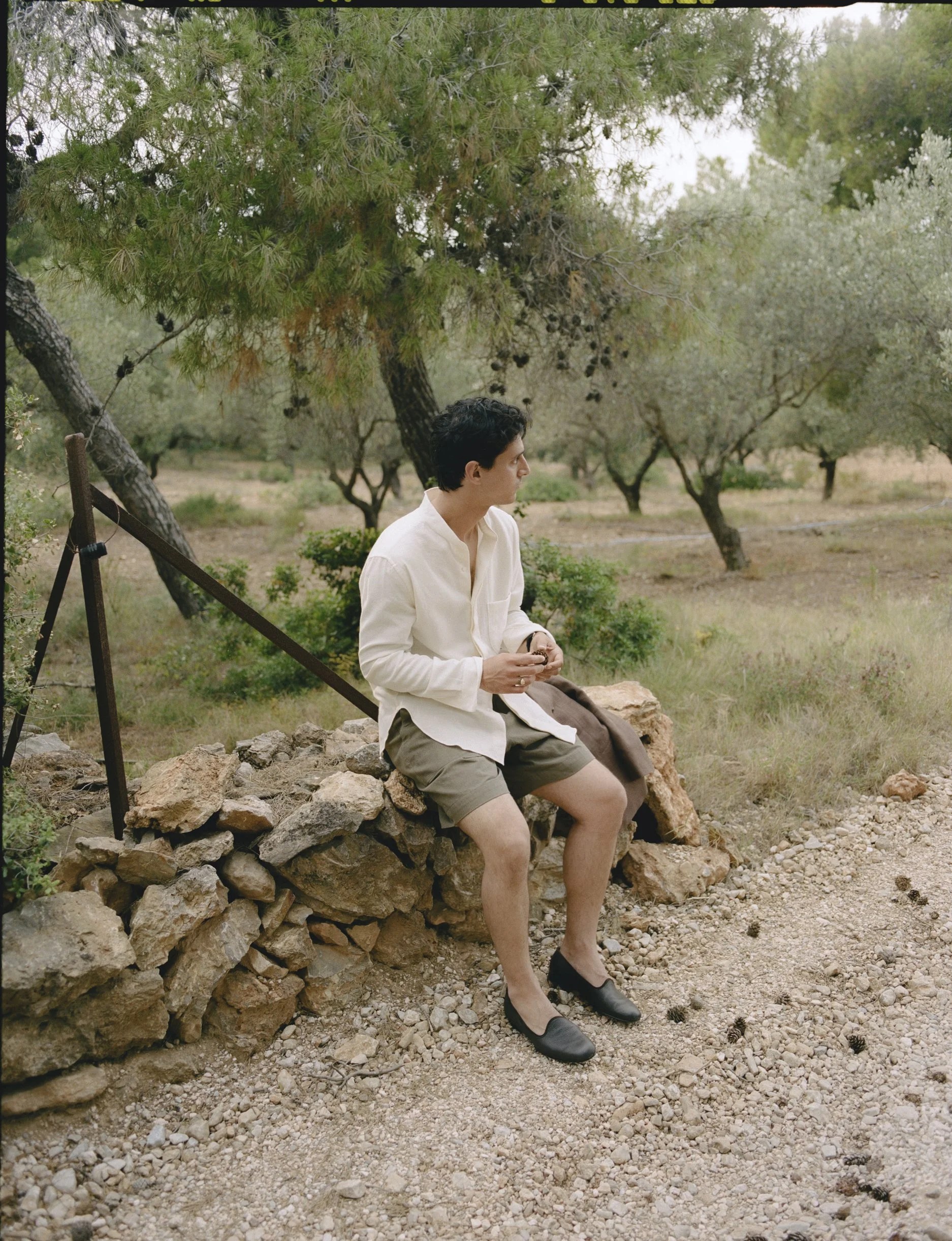 A quiet interpretation of the classic men’s tunic shirt, this piece walks the line between casual ease and refined elegance. Designed with a collarless neckline—part band collar, part tunic—it forgoes the traditional top button for a more open, breathable silhouette. When fully fastened, it takes on the composure of a formal long-sleeve tunic shirt; worn open, it becomes an airy companion for holiday lounging.