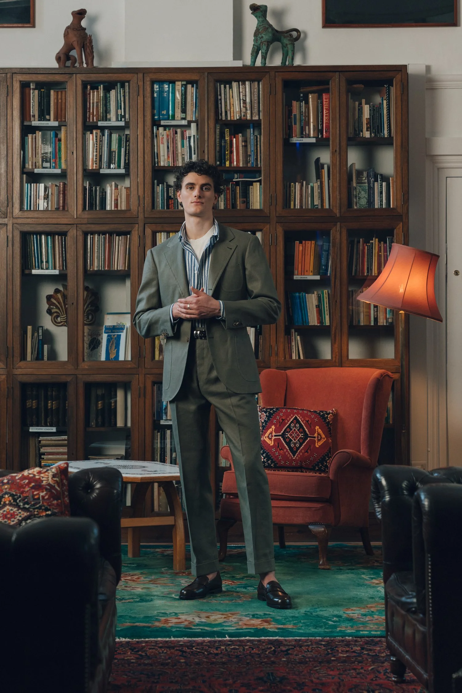 This design comes with a point collar and a placket with flapped chest pocket cut in a soft-curved bucket shape, box pleat and locker loop at the back and hand-cut barrel cuffs.