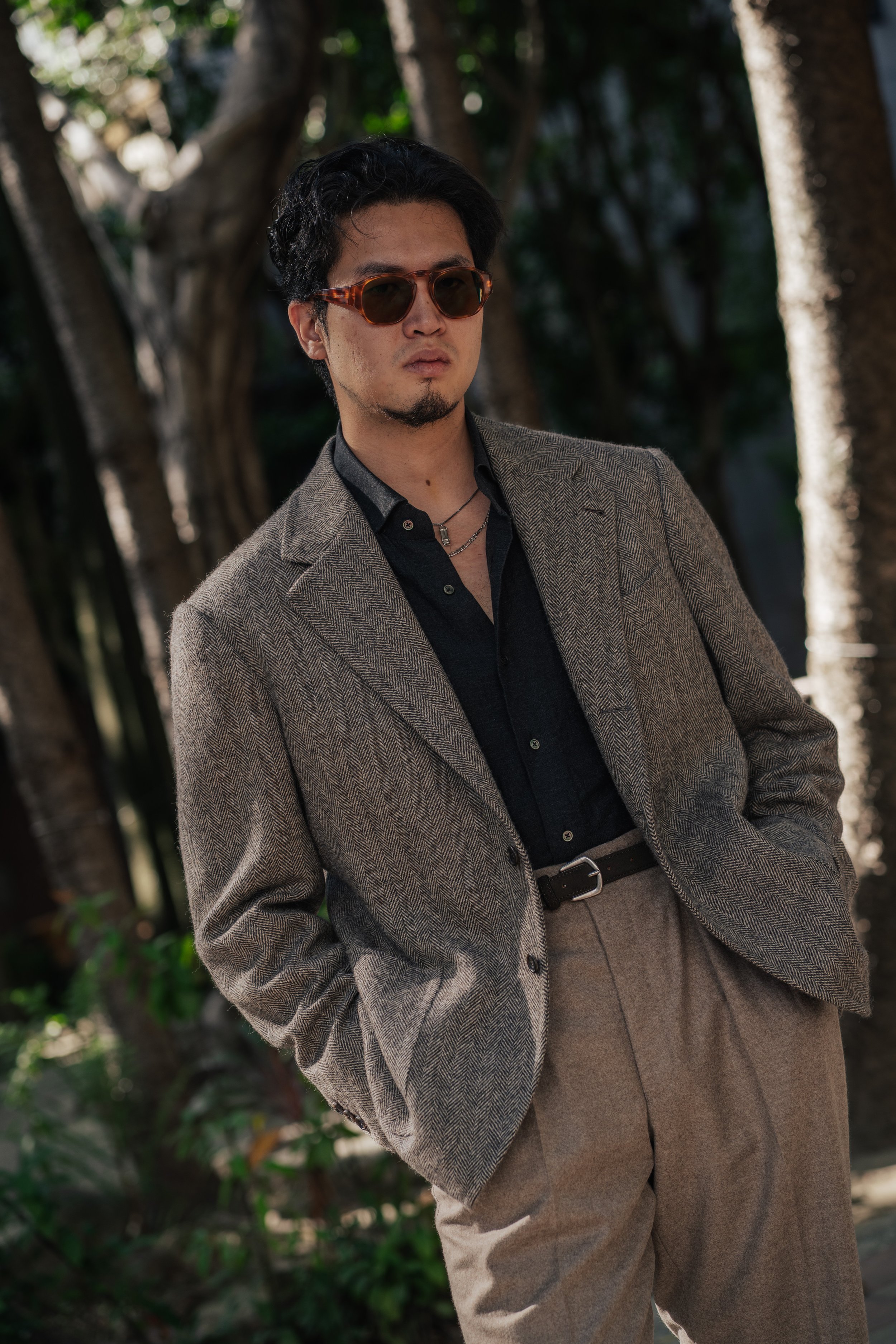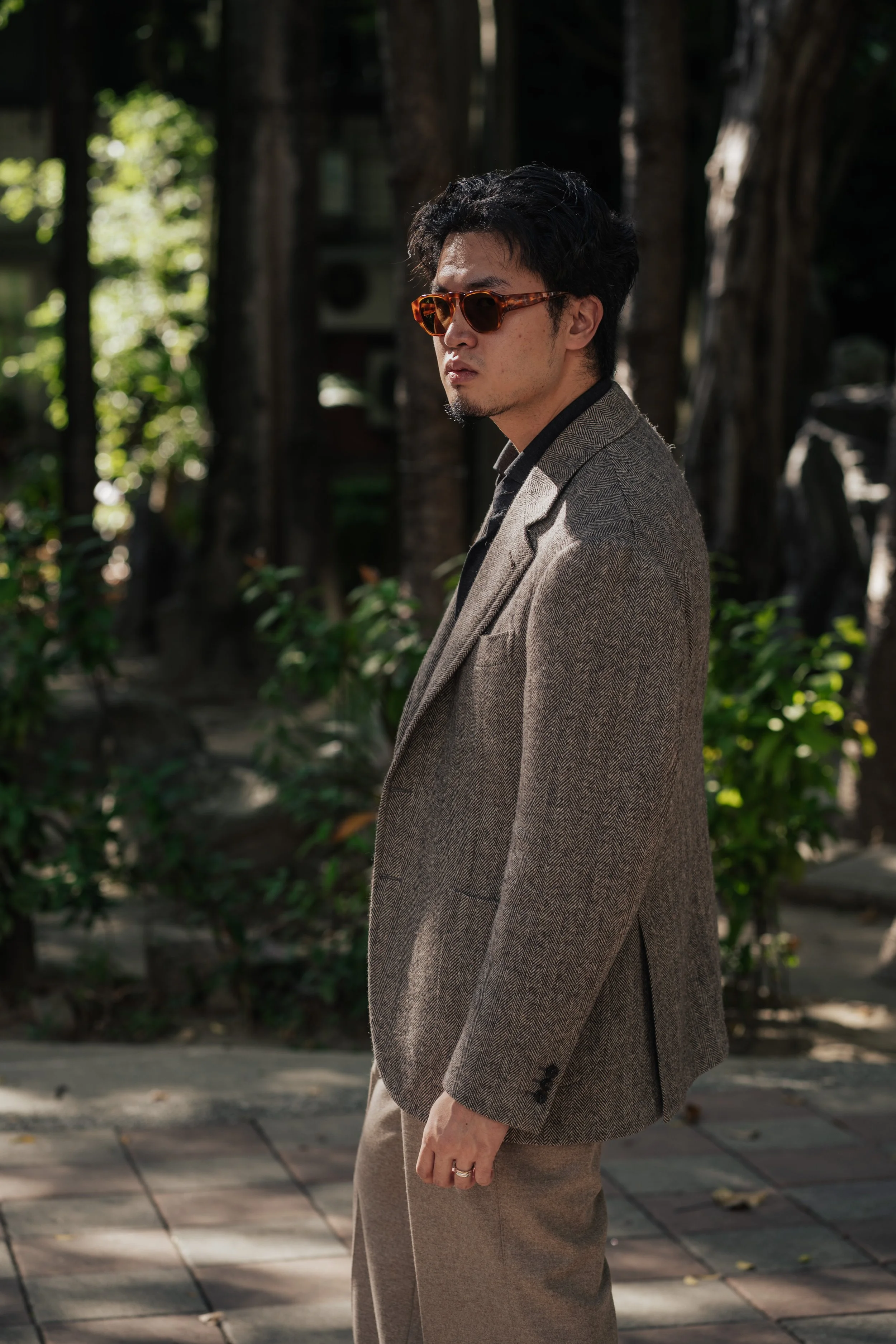 Set out as a quest to explore the concept of opposites, this piece serves as a thoughtful counterpoint to our house’s signature grey herringbone. While it maintains a sense of neutrality, it introduces a warmer, more inviting undertone, a deliberate shift in palette that aligns with the sunlit warmth often woven into our aesthetic.