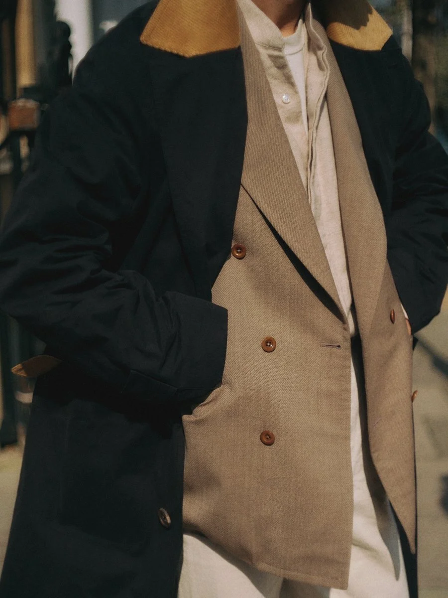 Rooted in equestrian tradition and reimagined through textile innovation, this design reflects the house’s quiet obsession with adapting heritage fabrics for new seasons. Traditionally a heavyweight cloth celebrated for its durability and distinctive double diagonal twill, cavalry fabric is reinterpreted here in a breathable, spring-ready weight. Woven with high-twist yarns and a more open construction, it offers comfort from spring through summer and into early autumn, placing it at the lighter end of a true three-season garment.