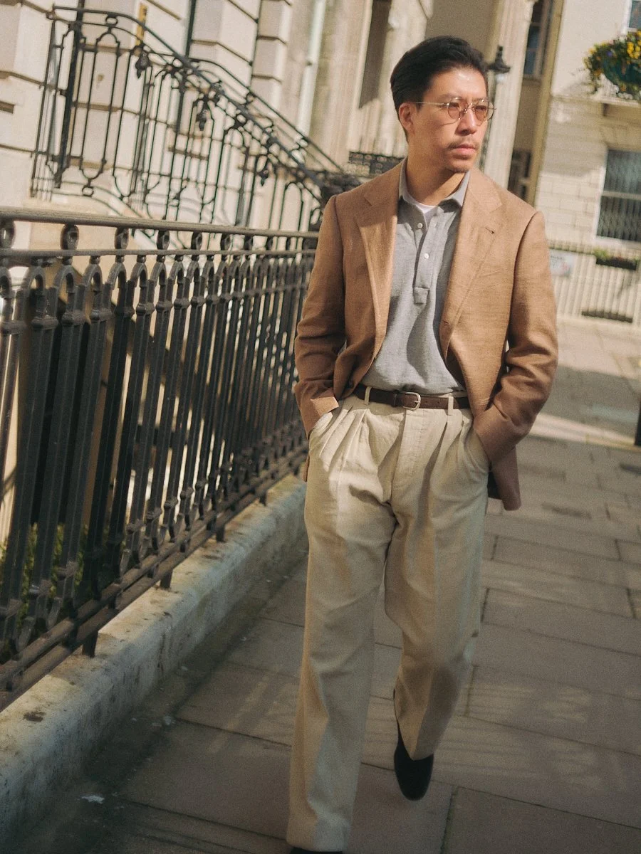 The upper pattern of the street slipper is meticulously hand-cut from a single piece, resulting in a more fluid and seamless design. Departing from the conventional Albert-style evening slipper, this tailored creation features a shorter vamp and eliminates sharp turns on the tongue, maintaining a consistently soft contour. This complements the natural curves of our tailoring, allowing for a more casual styling option. Imagine a standard slip-on loafer, but refined with one-piece leather and a thin, hand-attached sole that closely hugs the bottom of the shoe, exuding an understated elegance. It pairs beautifully with trousers, denim, and shorts alike.