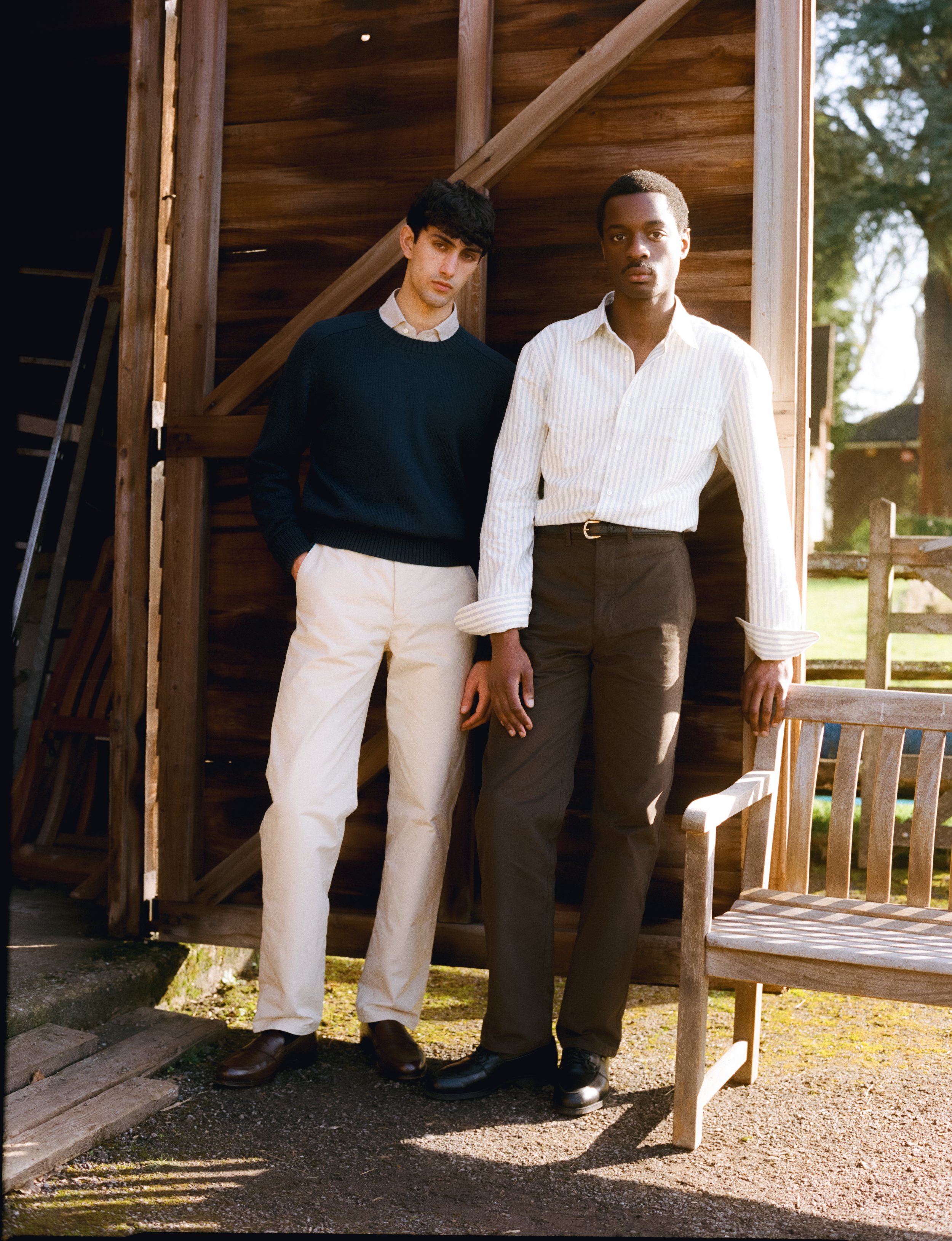 These flat front chinos in a 400 grams cotton with a brushed finish are our pursuit of the perfect, modern, everyday trousers. A classic design equipped with flat front and belt loops, cut in a mid-high rise, the chinos have an overall straight profile with the slightest taper towards the very end to emphasise the smart and elegant look. One of the noteworthy details highlights the defined lapped seams, which are a tell-tale sign of casualness that differentiates itself from other dress trousers.