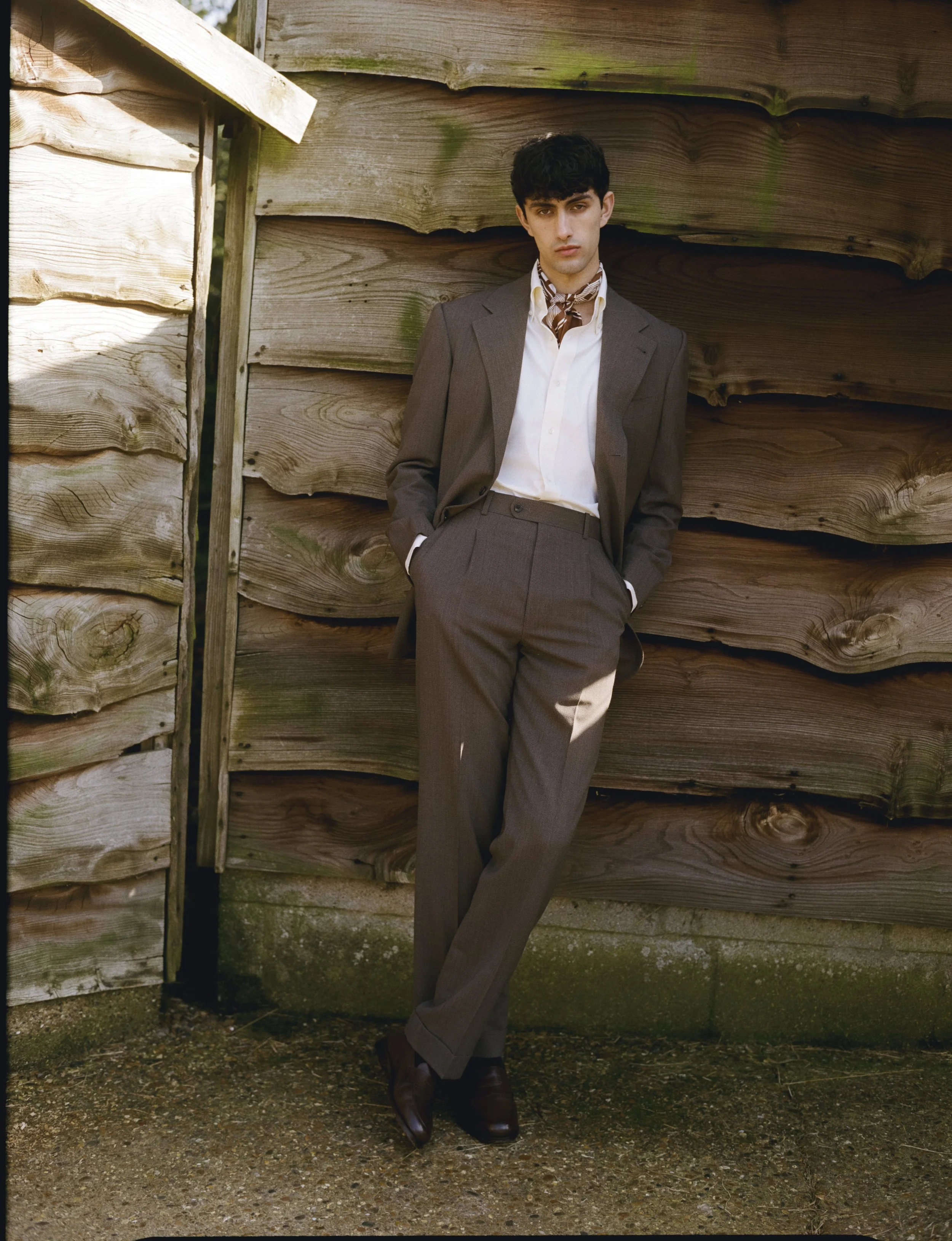 Our jacket features an unpadded shoulder with our signature lapel buttonhole, with higher armholes giving the garment an exceptional range of motion. We’ve also extended the shoulders with a natural silhouette for a timeless and approachable look. This jacket is specifically styled with jetted pockets to suit the formality.